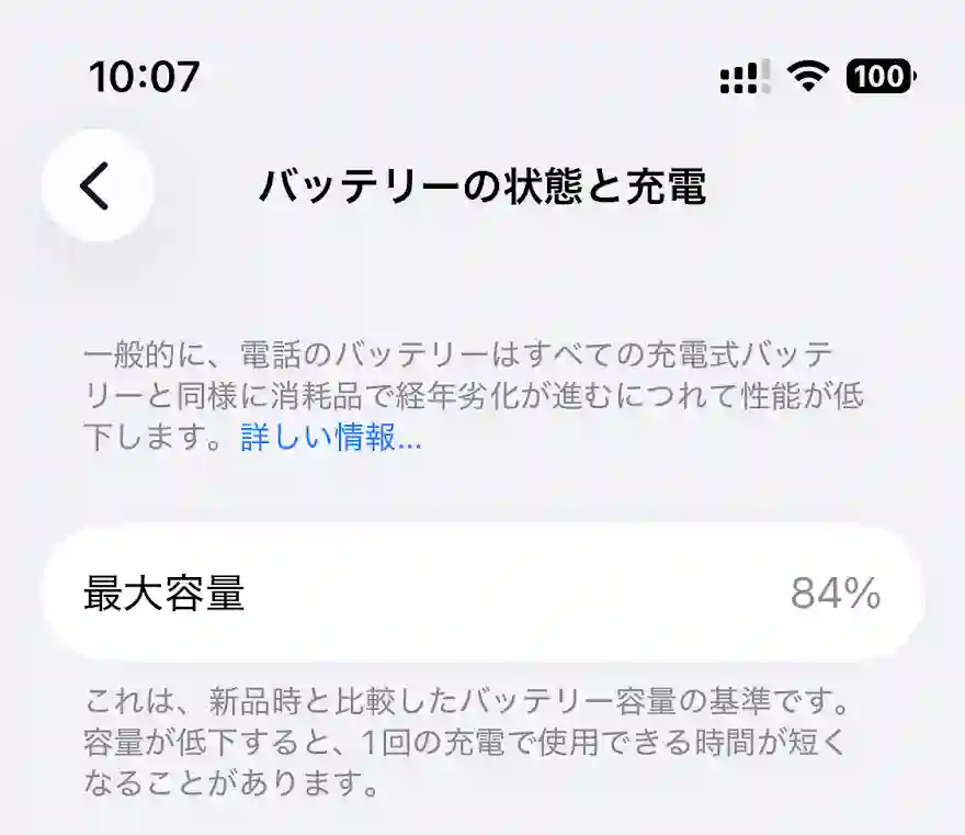 中古購入時はバッテリー最大容量が80%以上の個体を選ぶのが基本。
