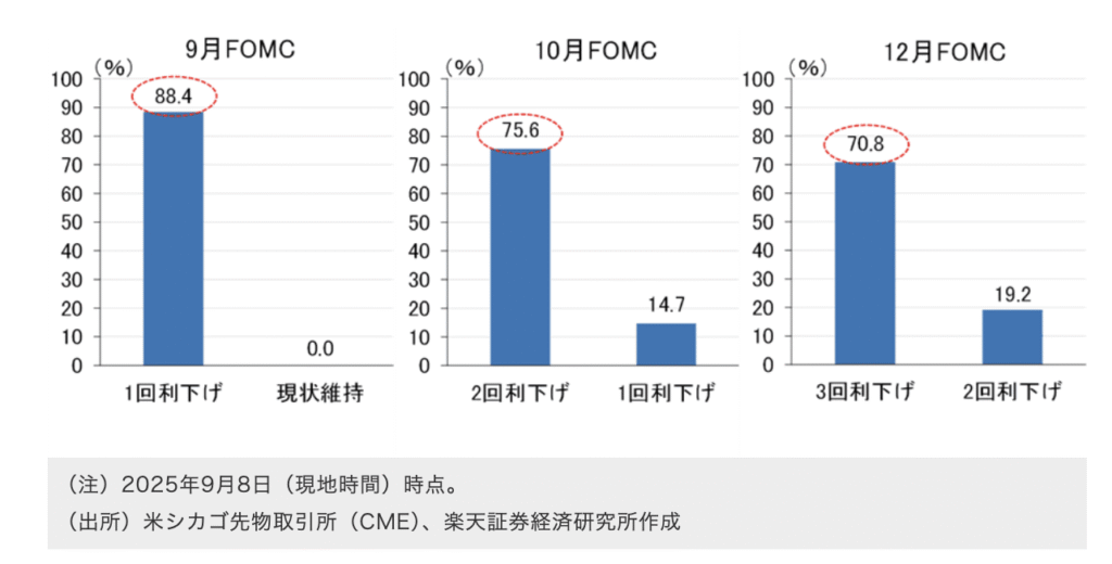 市場の予想では、7割近くが今年中に3回の利下げを見込んでいます。