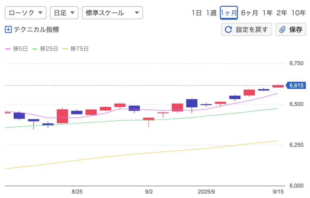 また、それに引きずられるかのように日本株も上がり続け、9/16日には一時45,000円台をつけました。