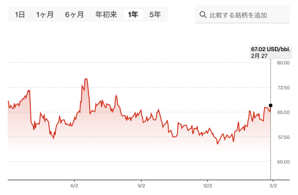 北海ブレント先物が1バレル=72ドル台を突破し、年初来で20%近くの高値を記録しています。