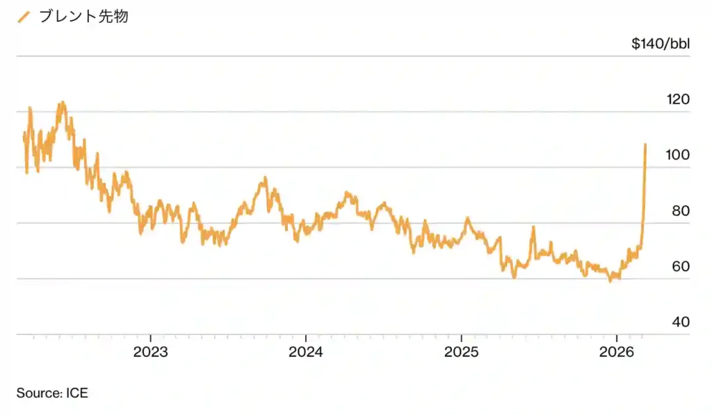 サウジアラビアやUAEが迂回ルートを使っていますが、それでも賄えるのは通常量の3分の1程度。3/9朝の情報では、すでに110ドルを超えてきています。