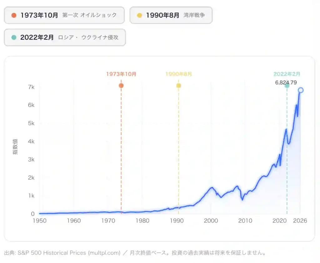 1973年の第一次オイルショック、1990年の湾岸戦争、2022年のロシアによるウクライナ侵攻——いずれも当時は「前例のない危機」として市場を揺るがしました。