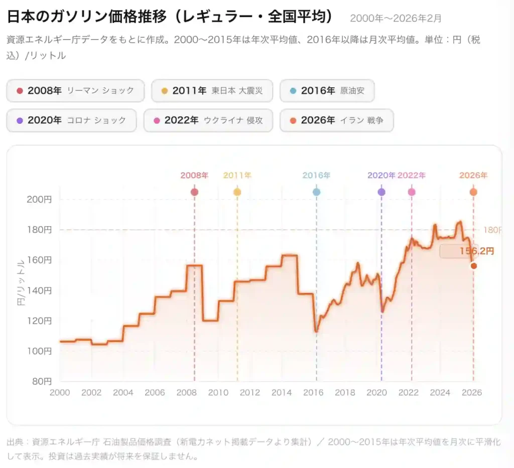 日本では現在1リットル161.8円程度ですが、200円超えの可能性も否定できない状況です。