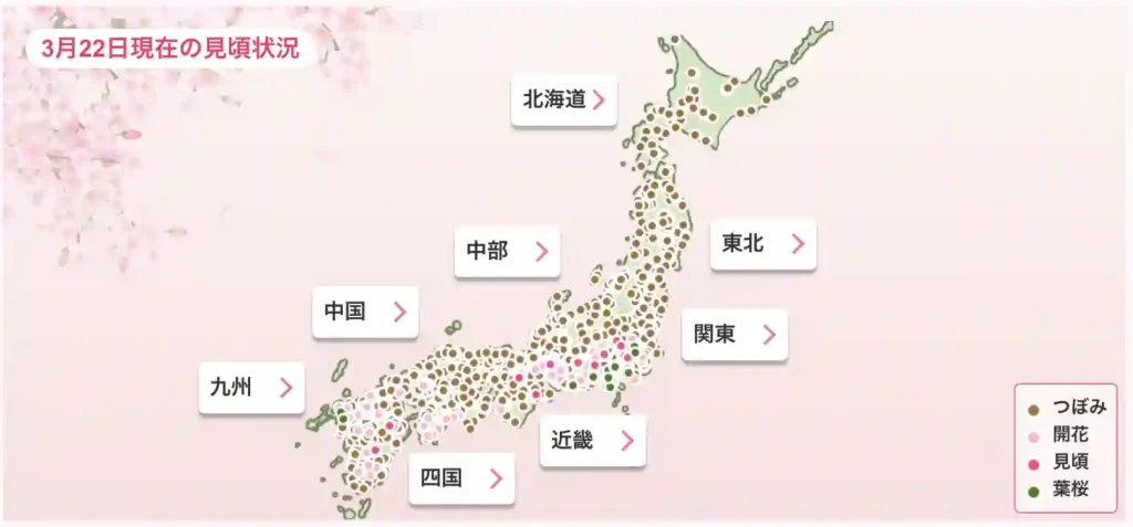 桜の開花予報が気になり始めるころですが、吸収や中部、関東では見頃のところもあるんですね。