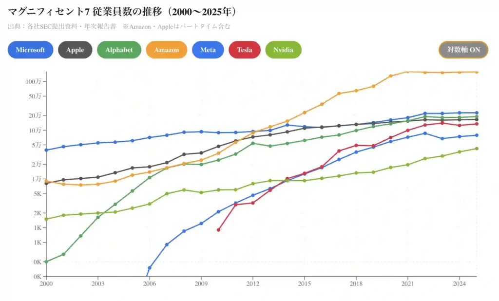 マグニフィセント7(アップル、マイクロソフト、アルファベット、アマゾン、メタ、テスラ、エヌビディア)の多くが、ここ10年で複数回の大規模なリストラを経験しています。