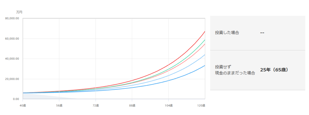 ちなみに投資しなかった場合は、65歳時点で資金は尽きてしまいます。。。